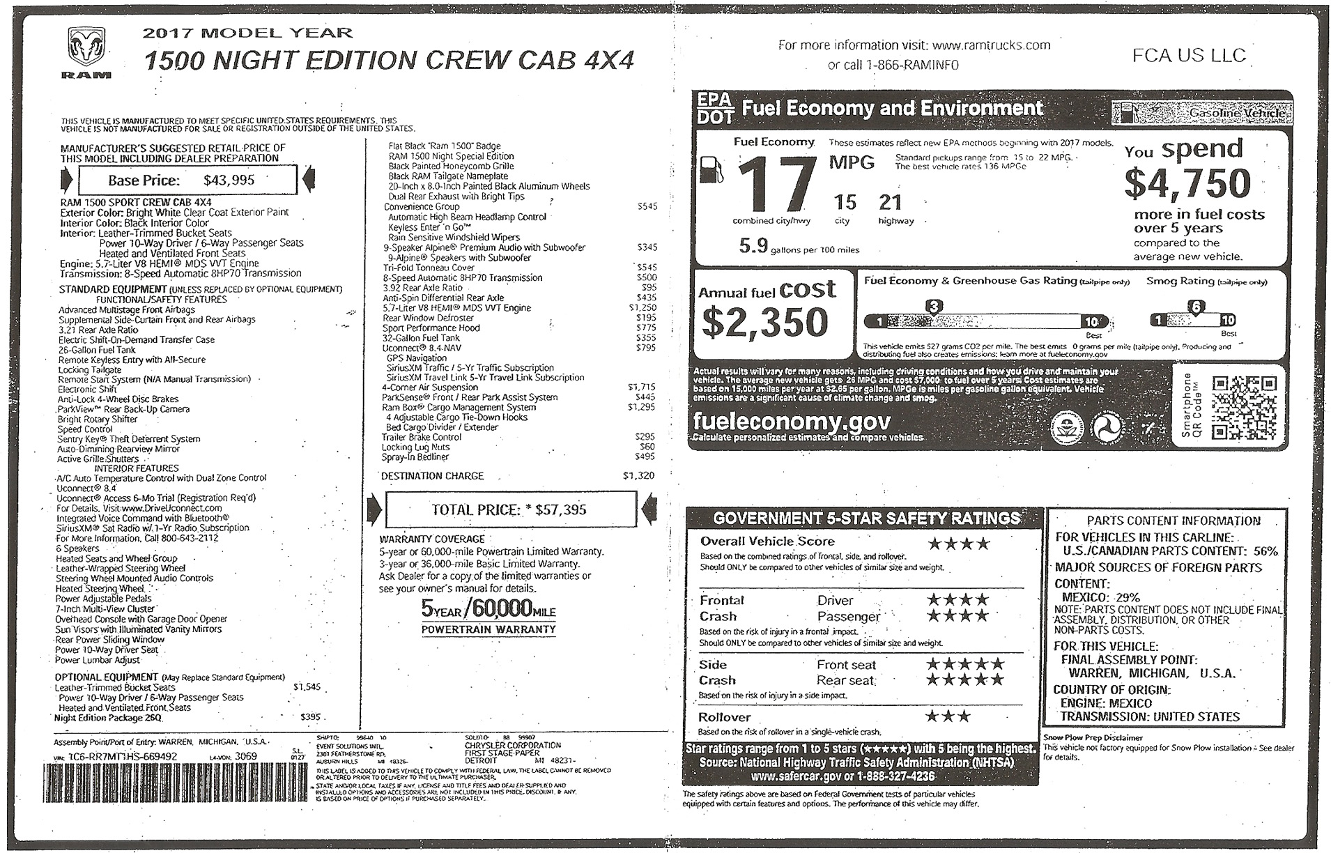 la lista detallada aquí. Su precio, como la probamos: $57,395