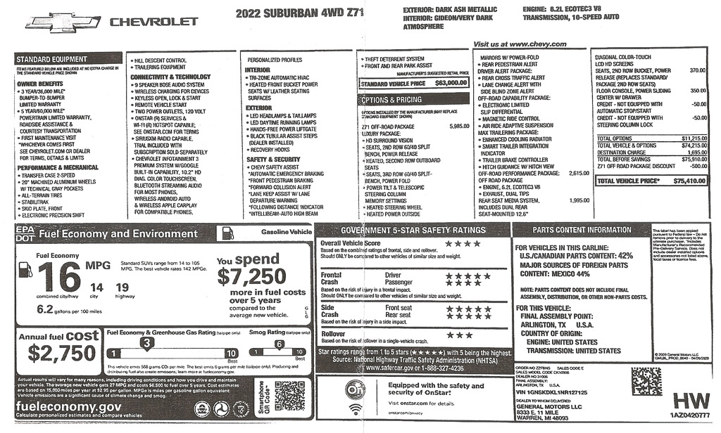 pulgadas en diagonal ahora es estándar en Tahoe y Suburban 2022 para