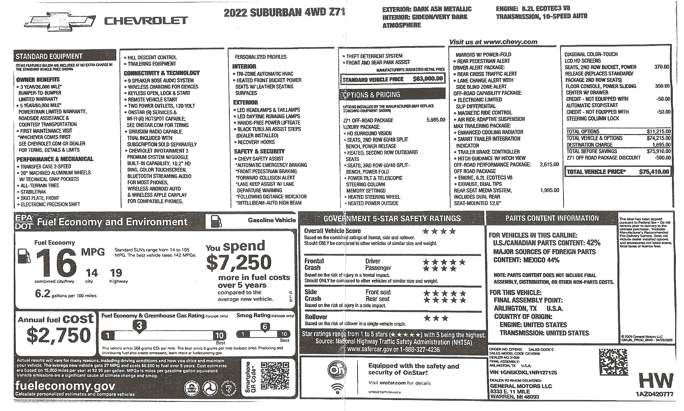 disponible en el RST, Z71 y Premier. El motor de 6.2 L es estándar en el