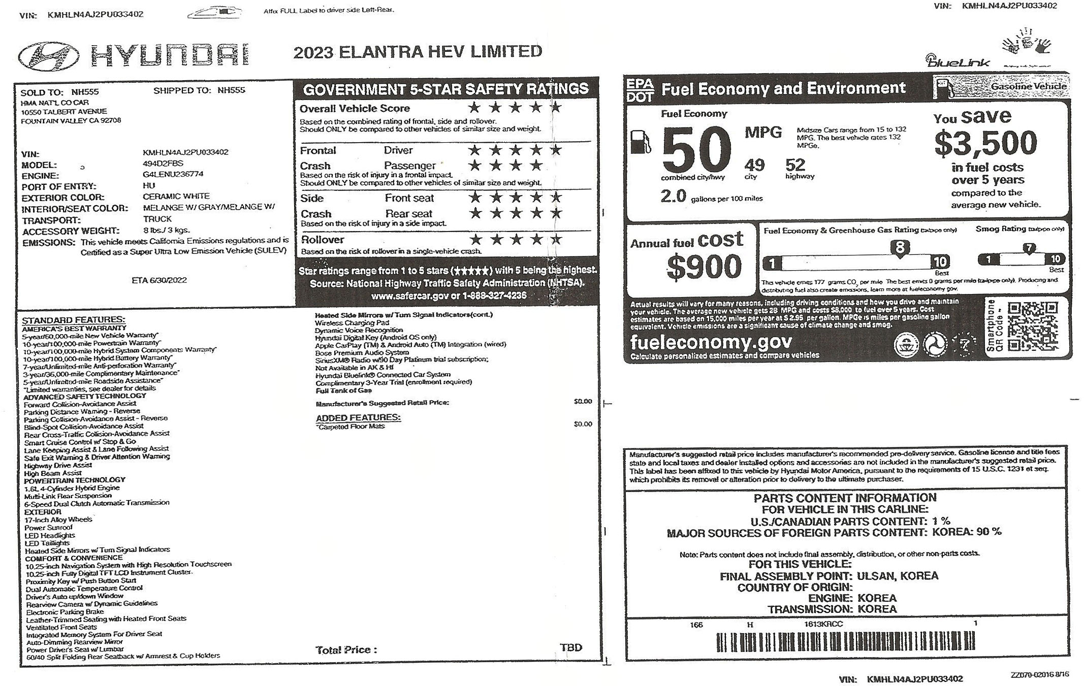 El Elantra normal no-híbrido tiene 147