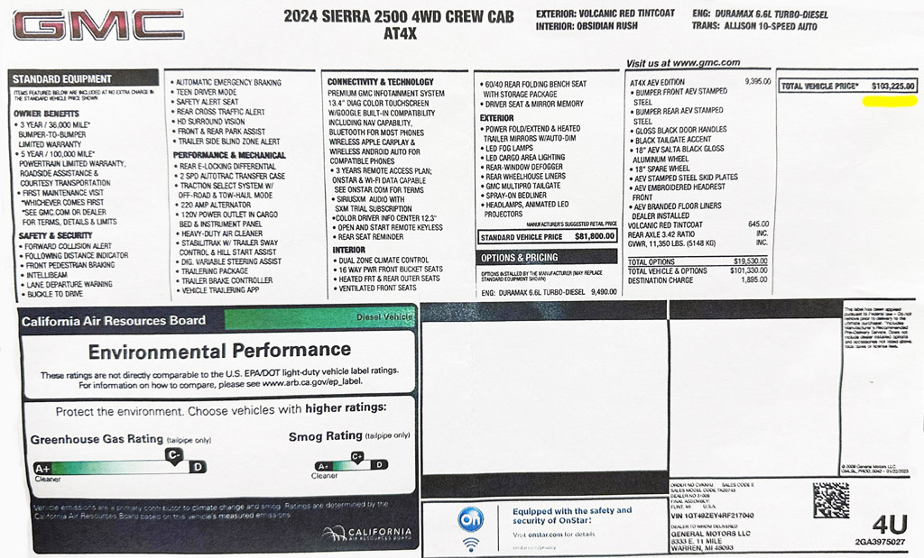 Sierra 2500 AT4X con un motor Duramax
