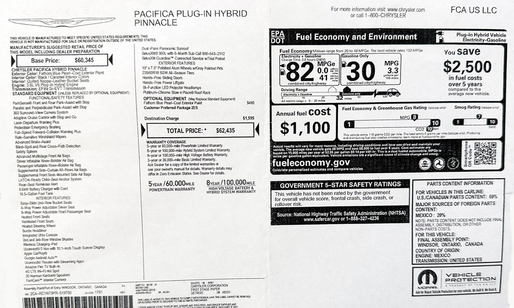 minivan híbrida enchufable (PHEV) fabricada por Chrysler.